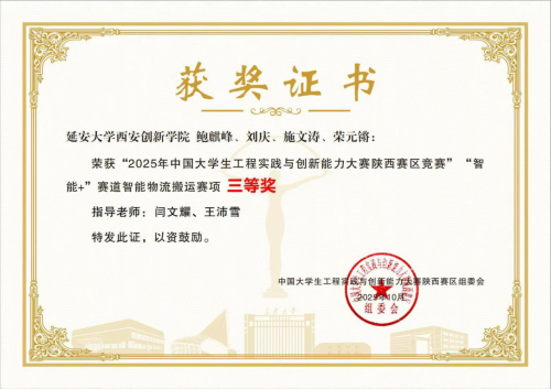 本次获奖队伍由数据科学与工程学院学生鲍麒峰、刘庆、施文涛、荣元锵组成,闫文耀教授和王沛雪老师指导参赛。参赛团队凭借扎实的工程能力和卓越的创新精神,成功打造出一台完全自主设计、组装与编程调试的智能物流搬运小车,充分展示了我校学子的创新实力与工程实践能力。